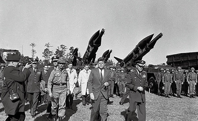 上圖:美國總統肯尼迪與陸軍軍官于古巴導彈危機期間。