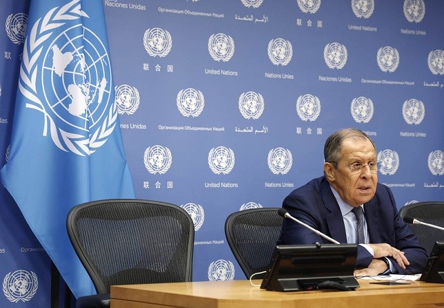 上圖:9月24日,俄羅斯外交部長拉夫羅夫參加聯合國大會,出席新聞發布會。