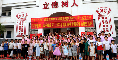 “有一位小男孩告訴我,他要更努力讀書,以后來華東師范大學讀師范專業,將來也做一名好老師!”回顧在江西贛州蓉江新區潭口鎮江壩村的志愿服務,華東師范大學地理專業師范生關睎元既興奮又感動。今年暑期,中國兒童少年基金會的支持下,華東師范大學的130余名師范生積極開展“守護童年·牽手共成長”暑期兒童關愛服務活動,將來自師大的愛和溫暖送到全國21個省市地區的鄉村孩童身邊。師范生們以豐富多彩的拓展課程,形式多樣的課外活動,讓孩子們特別是其中的留守兒童、困境兒童度過了一段快樂又充實的假期時光。