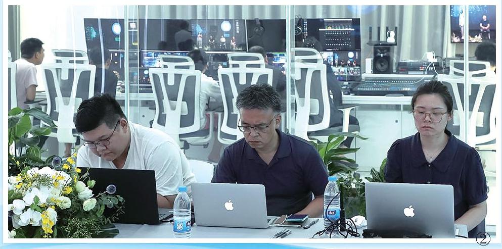 上報43樓融媒創新空間內外,志愿者和技術團隊緊張監控線上線下狀態