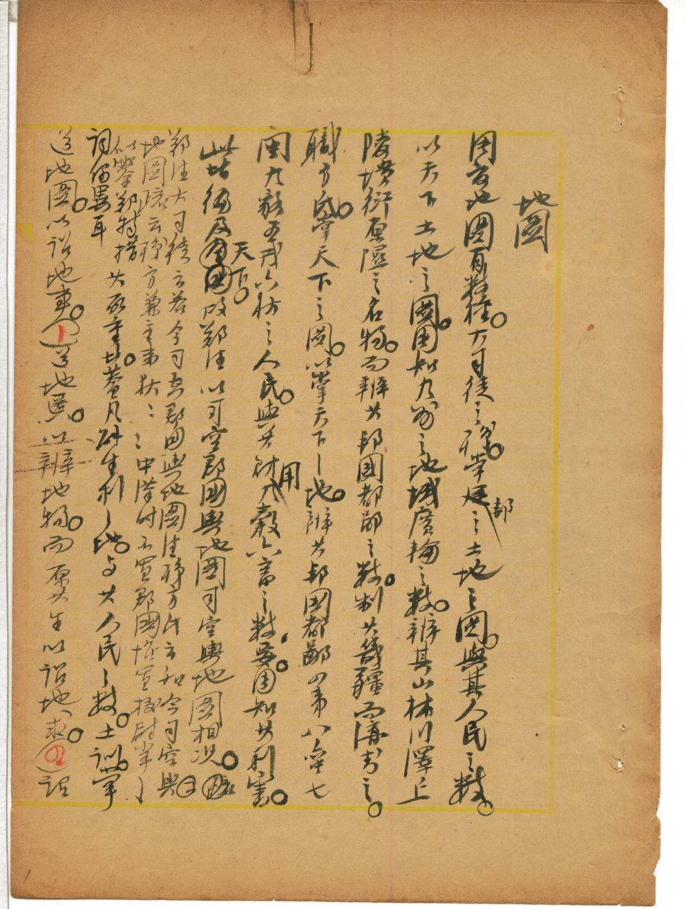 上地理課,必帶一上海商務印書館所印中國大地圖。先將各頁拆開,講一省,擇取一圖。先在附帶一小黑板上畫一十字形,然后繪此一省之四至界線,說明此一省之位置。再在界內繪山脈,次及河流湖澤。說明山水自然地理后,再加注都市城鎮關卡及交通道路等。一省講完,小黑板上所繪地圖,五色粉筆繽紛皆是。聽者如身歷其境,永不忘懷。