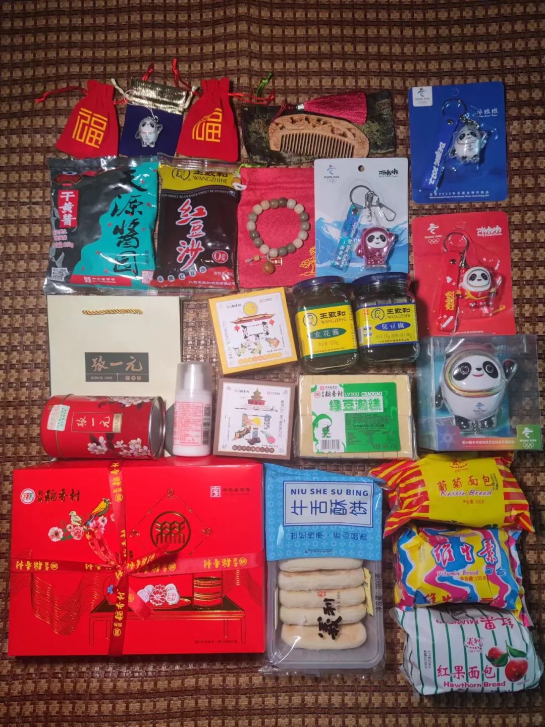 “我不知道對方會送什么,期待打開箱子時的驚喜感,就像開盲盒。”小杭沒有失望。體積超過半個26英寸行李箱的特產快遞里,老北京蒜腸、張一元茉莉花茶、黃豆醬與甜面醬、稻香村流心月餅等北京風味美食排列緊密,其間還見縫插針地塞了6個款式與顏色各異的冰墩墩掛件與擺件。