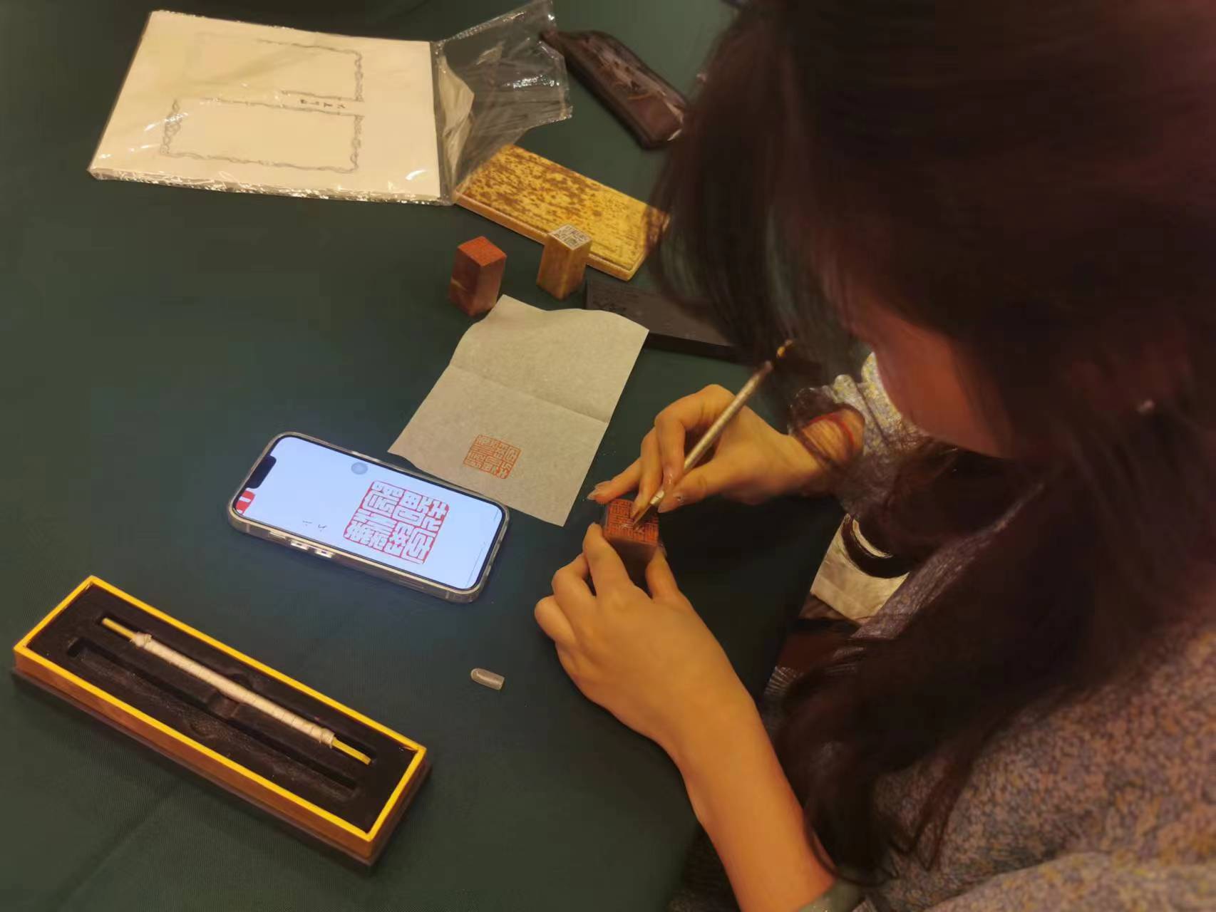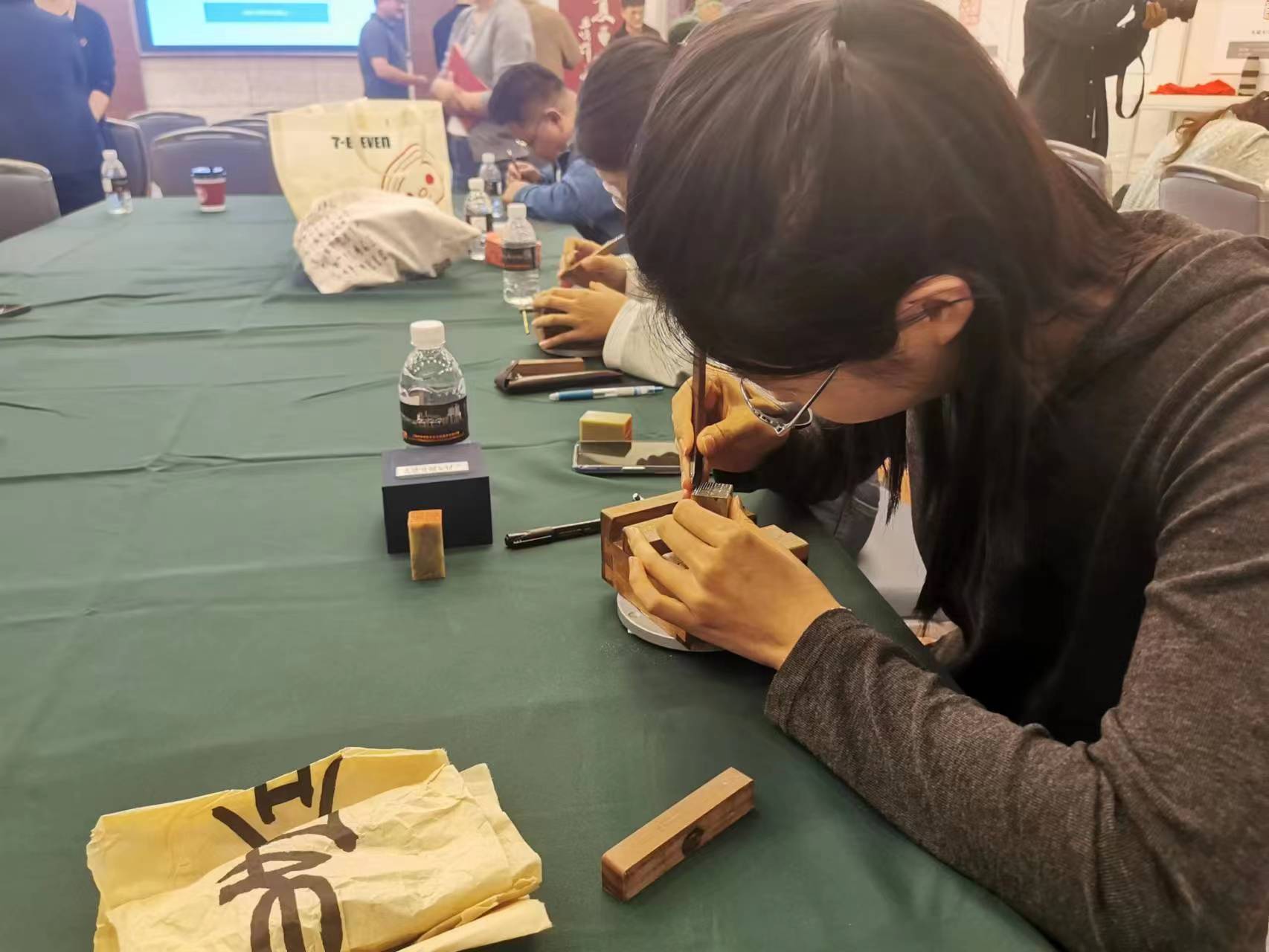 當天的現場創作會上,40余名華東師范大學書法篆刻專業青年學子親手刻下精美的篆刻作品,紀念學校悠久的辦學歷史和大學精神。他們靈巧地在一方方印石上發揮靈感,呈現大夏大學的校史、校歌、辦學成就和歷史記憶等。