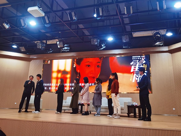 華東師大大夏書院院長(zhǎng)龐維國(guó)說(shuō):“‘課堂學(xué)雷雨,課后看雷雨’,這次《雷雨》讓同學(xué)們獲得了一次性海派文化沉浸式體驗(yàn)、一次性行業(yè)精英深度對(duì)話、一次性跨文化交流、一次性舞臺(tái)創(chuàng)作展示。在交流與體驗(yàn)中感受戲劇的魅力,提升藝術(shù)鑒賞力。”校黨委學(xué)生(研究生)工作部部長(zhǎng)趙健表示,要進(jìn)一步將中華優(yōu)秀傳統(tǒng)文化融入學(xué)校“卓越育人、卓越學(xué)術(shù)”行動(dòng)中,講好中國(guó)故事、傳播好中國(guó)文化。