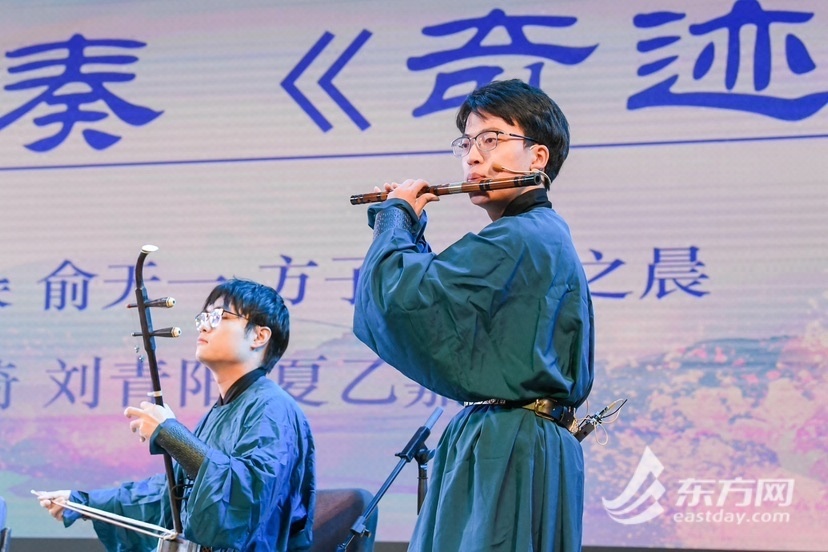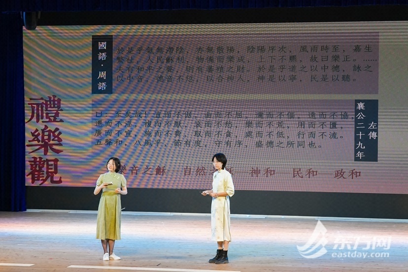 知名青年歌唱家、華東師大音樂學院石春軒子教授一曲《山之高》,古意盎然,中華傳統文化之美在文學與藝術的互動中別開生面。中國少兒戲曲第26屆“小梅花”獎得主、金山亭林小學學生吳林璘帶來錫劇表演《梨花頌》,唱詞宛轉優美,古韻悠揚。昆曲《牡丹亭?游園?皂羅袍》以江南地區特有的劇種展現了別具一格的地方文化特色,江南文化的精髓融合于悠揚的曲風和精妙的表演之中。