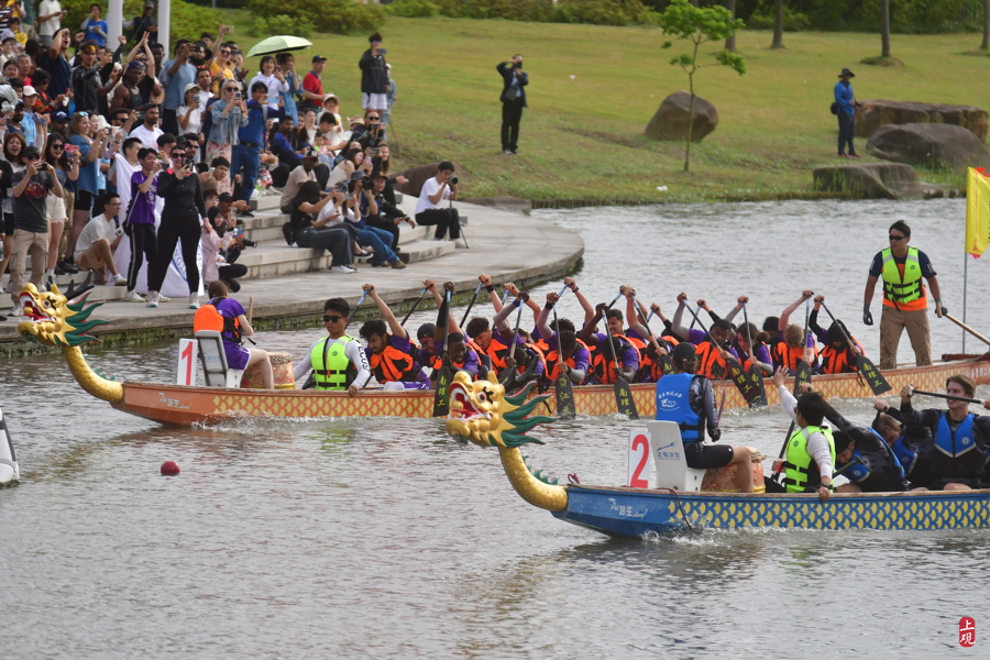 濃濃中國風,滿滿國際范,第十四屆上海高校外國留學生龍舟賽暨第二屆長三角高校外國留學生龍舟邀請賽,當天在華東理工大學奉賢校區鳴金。34支隊伍、106個國家、765名參賽選手,來自復旦大學、南京理工大學、浙江大學、中國科學技術大學等蘇浙滬皖高校的留學生龍舟隊揮槳競逐……不同的膚色,一樣的龍舟;不同的語言,一樣的鼓點。