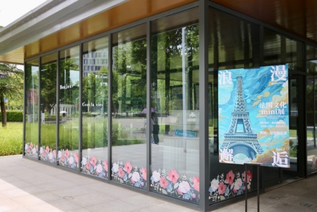 這是華東師范大學外語學院團委依托法語俱樂部學生社團策劃的“浪漫的邂逅”法國文化Mini展。展覽分為“Bonjour!遇見法蘭西文化”和“Enchanté!漫步語言花園”兩個區域,呈現中法建交歷程和法國文化元素,還有麗娃河畔的法文翻譯家風采和櫻桃河畔的法語系學生優秀作品,既呼應今年中法建交60周年,也讓浪漫優雅的法蘭西文化成為師大校園中的一抹亮色。