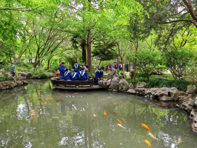 21世紀曙光初照,又在山脊建起“世紀鐘亭”,小橋流水里,又放養了觀賞魚。這里已成為數十年來復旦師生游樂、讀書的好去處。燕園幽靜典雅,綠樹流水相映成趣,池里的錦鯉悠然自得,小小一方自成天地,也是不少畢業生拍照打卡的選擇地。