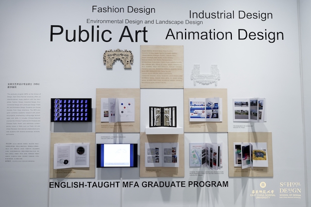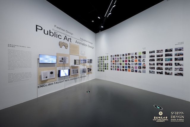 二號廳展示的是設計學院以國際化辦學和產教融合辦學為主要特色的教學改革及其成果案例。產教融合項目實踐課程教學的改革是學院教學改革的重要組成部分,學院每學期向學生公布十多個與企業合作的實際研發與設計項目課題,學生不分專業、不分年級、不分本碩,自主選擇進入自己感興趣的項目課題組進行學習,課程指導教師由學院教師與企業和業界導師組成聯合導師組,與課題研究相關的國際國內工作營和專題講座穿插其中。學期結束時學生需要通過現場展覽完整展示研發設計成果,并作項目路演。此項改革獲得了上海市教學成果一等獎,并獲得了國家級教學成果二等獎。