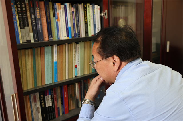 除了心理學(xué)類,書櫥上還多有滋養(yǎng)心靈的國學(xué)類書籍。“當(dāng)年也曾是一枚想考中文系的文藝青年。”龐維國教授笑著說起高考往事。