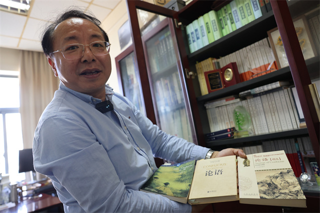 書架中《中國文化通志》一書,是中華民族歷史上第一部對(duì)中華文化由古到今、分門別類進(jìn)行全面系統(tǒng)概括,足以代表中國及其豐富文化傳統(tǒng)的百卷巨著。還有一套蔚為大觀的《大中華文庫》,這是我國歷史上首次系統(tǒng)地全面地向世界推出外文版中國文化典籍的國家重大出版工程,都被龐維國視為至寶,“我們很多研究論文是在國際雜志上發(fā)表的,這些文獻(xiàn)我要經(jīng)常翻看的,在引述時(shí)也會(huì)更加準(zhǔn)確。”龐維國說。