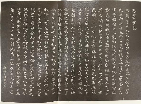 馬公愚先生曾為大夏大學多座建筑的落成與重大慶典書寫銘文,其中包括現在仍在普陀校區的思群堂,落成時由馬公愚先生書寫《思群堂記》,還有《大夏大學體育館落成頌》《大夏大學校舍第一座奠基記》《大夏旗桿銘》《大夏大學十周年紀念頌》等等,這些銘文的書寫都與大夏大學的歷史發展緊密相連。