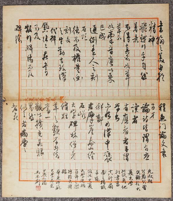 馬公愚先生擬書寫十八行扇面樣式的論書手稿