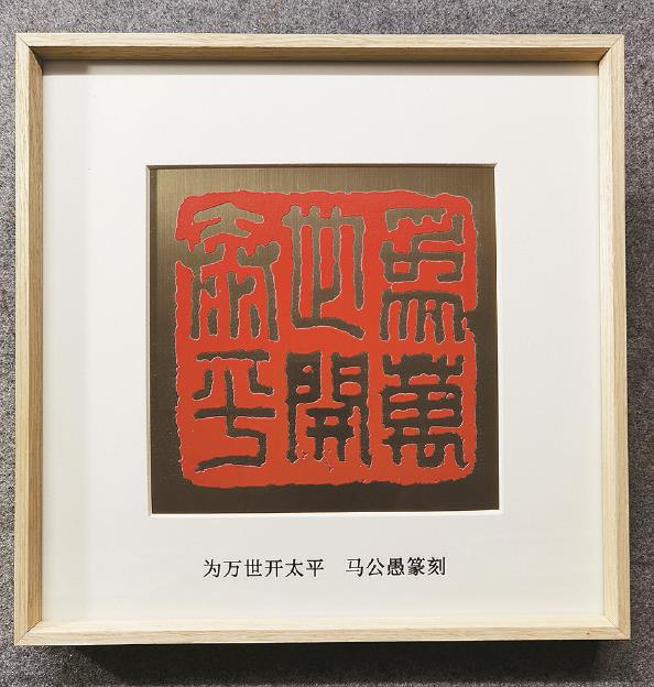 銅制放大的馬公愚先生所刻“為萬世開太平”印章