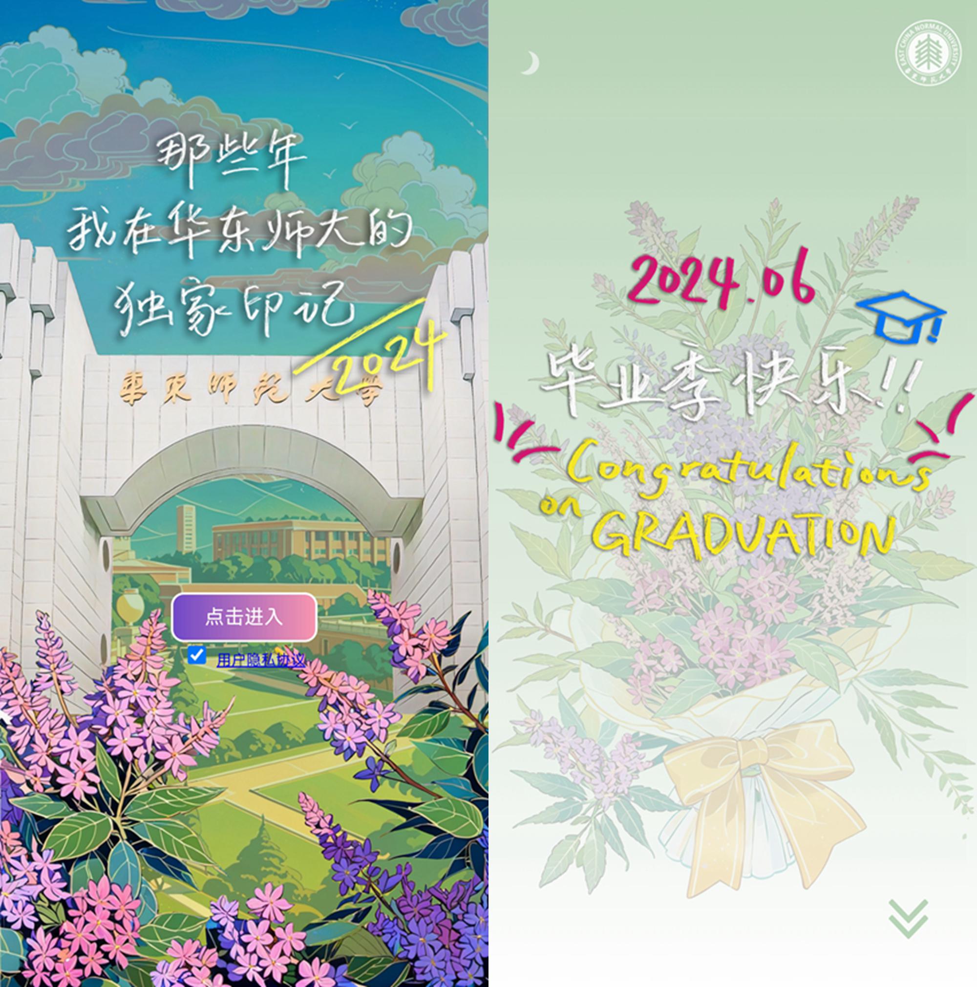 “希望大家能夠帶著這份專屬的師大‘獨(dú)家印記’,懷著飽滿的熱情與力量,奔赴下一個(gè)人生遠(yuǎn)方?!痹诮裉欤?月20日)下午的畢業(yè)典禮上,華東師范大學(xué)2024屆畢業(yè)生收到了由校長錢旭紅院士公布的畢業(yè)季“數(shù)智”禮物,《我的“元宇宙”——在華東師大的獨(dú)家印記》(以下簡稱《印記》)。這份禮物依托畢業(yè)生的個(gè)性化數(shù)據(jù),圍繞“回憶”與“成就”兩個(gè)關(guān)鍵詞,全景式描摹了多姿多彩的校園生活,讓每位畢業(yè)生都收獲專屬“獨(dú)家印記”。