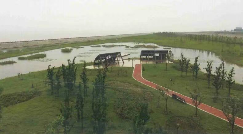 在生態修復方面,鸚鵡洲濕地的核心目標是濕地植被恢復、水質凈化和滿足游憩,但人們在實踐中也意識到,對于抗風消浪、應對氣候變化而言,這片總面積23.3 公頃、擁有 2.2 公里海岸線的濕地起到了明顯的作用。2018年“摩羯”臺風、2021年“煙花”臺風時,海浪便越過了這里6米高的保灘壩。附近城市沙灘景區受損嚴重,但鸚鵡洲濕地內側建筑物完好無損。由于濕地的保護,9米高的大堤不致受沖刷。大堤以防200年一遇的洪水為標準,要把海水徹底攔在外面,減少沖刷就能減少維護成本。
