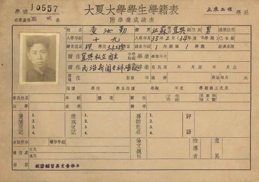 1950年,查汝勤畢業照。