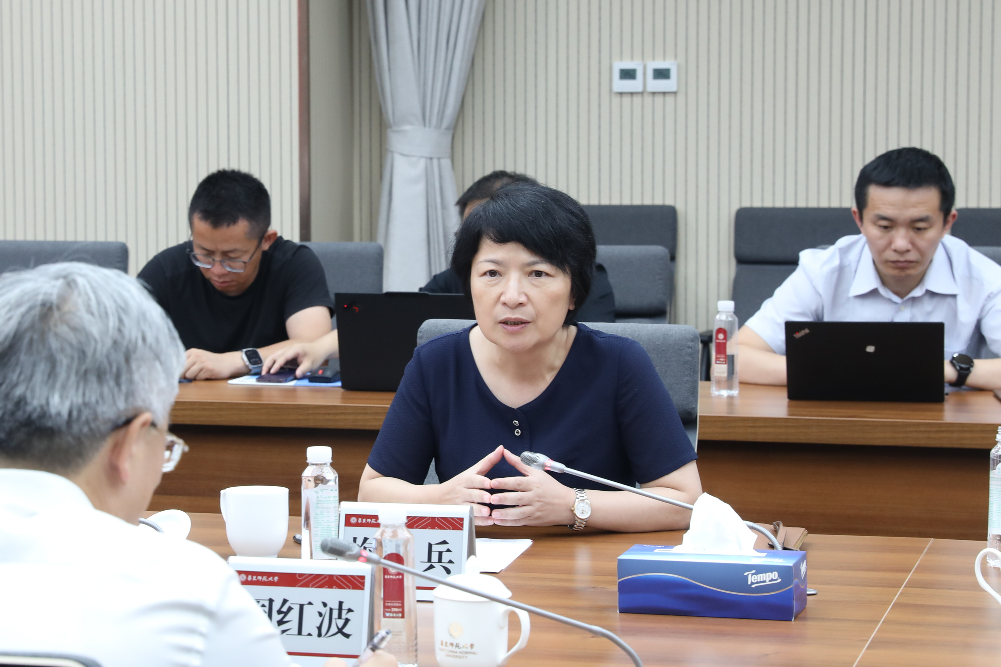 7月3日,海南省委常委、三亞市委書記周紅波一行來華東師大交流訪問。華東師大黨委書記梅兵與周紅波一行座談交流,校黨委常委、副校長施國躍主持座談會。