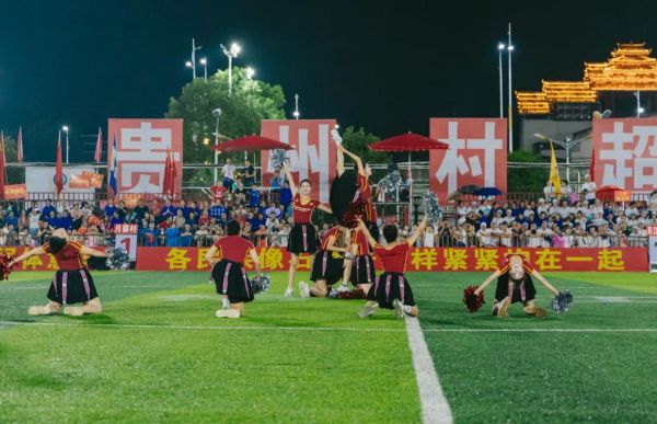 6月29日,貴州師范大學學生在“村超”賽場上表演啦啦操《力》