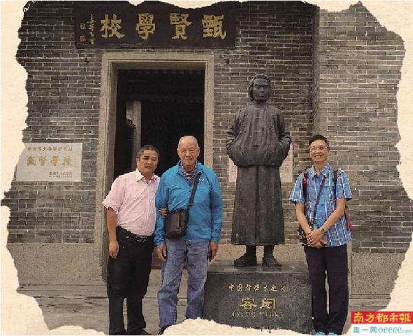 容啟兆幼子容應(yīng)驊(左二)返鄉(xiāng)祭祖時,曾探訪甄賢學(xué)校。 受訪者供圖