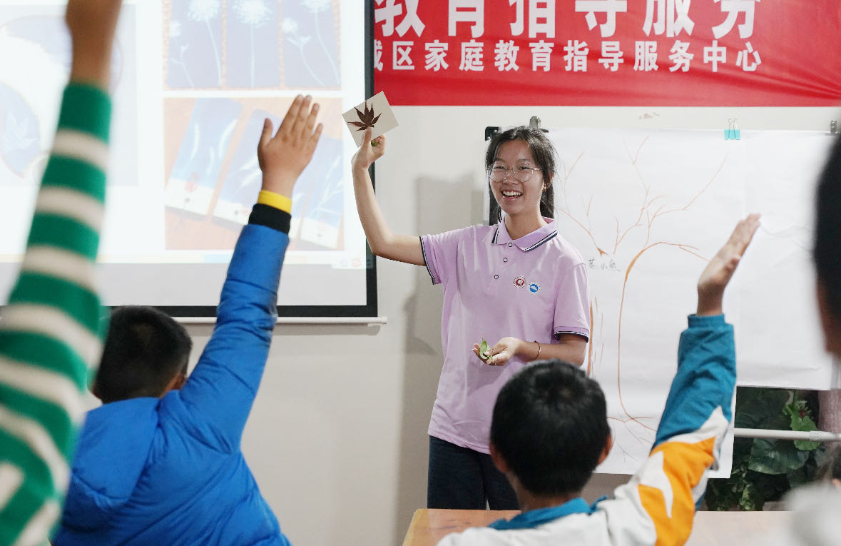 “課前,我們提前與孩子們溝通,了解他們的學習難點與興趣點。這不僅有助于大家調整教學策略,更有助于對學生個體差異的尊重與關懷。”講解《魔法古建》課程的實踐隊員安興毅說。