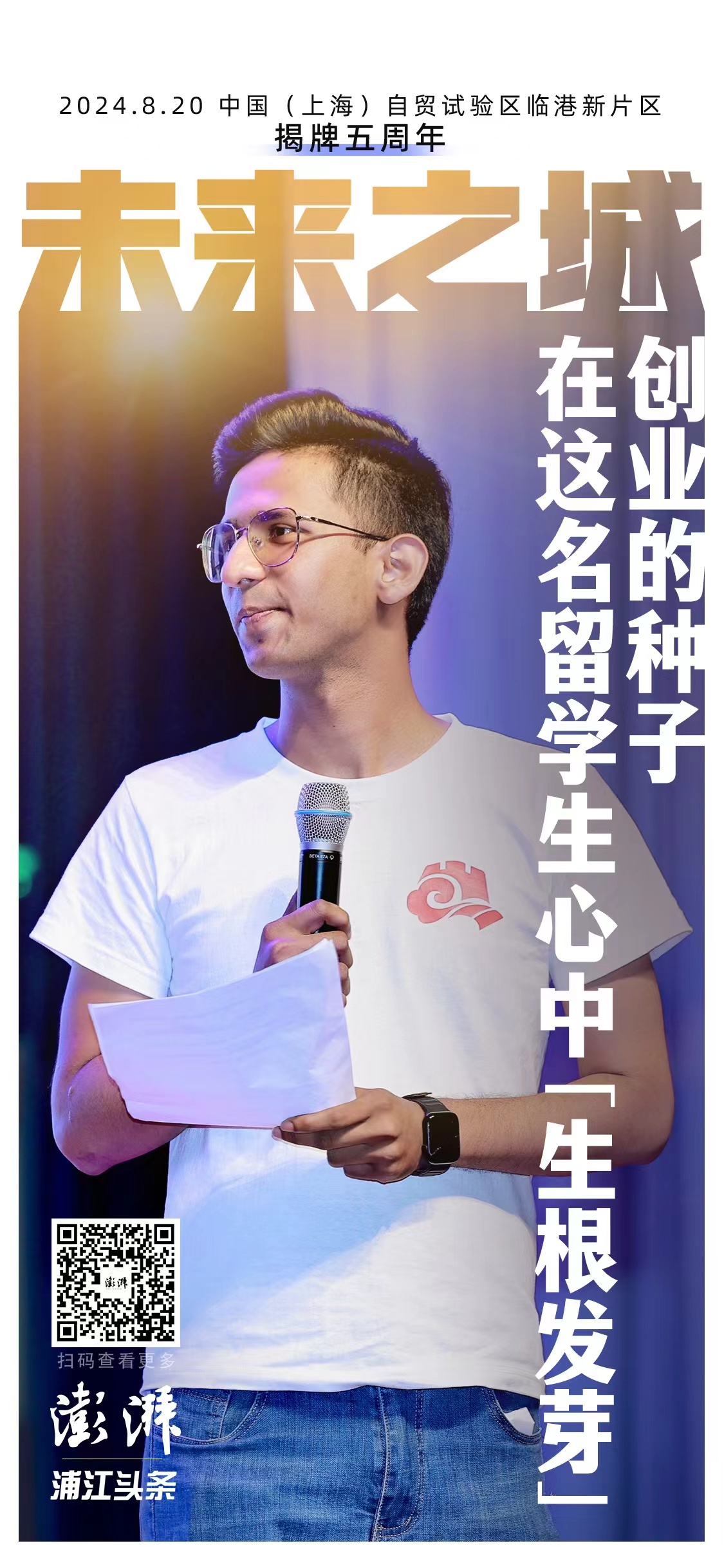 在2023年11月初次受邀參訪臨港新片區(qū)前,創(chuàng)業(yè)這件事兒,只是巴基斯坦留學(xué)生周子寒心里的一顆小種子。參訪的半天時(shí)間,看完高新企業(yè),聽完臨港新片區(qū)管委會(huì)工作人員的政策介紹,他感覺到那顆小種子慢慢往上躥——?jiǎng)?chuàng)業(yè)的念頭愈發(fā)強(qiáng)烈。