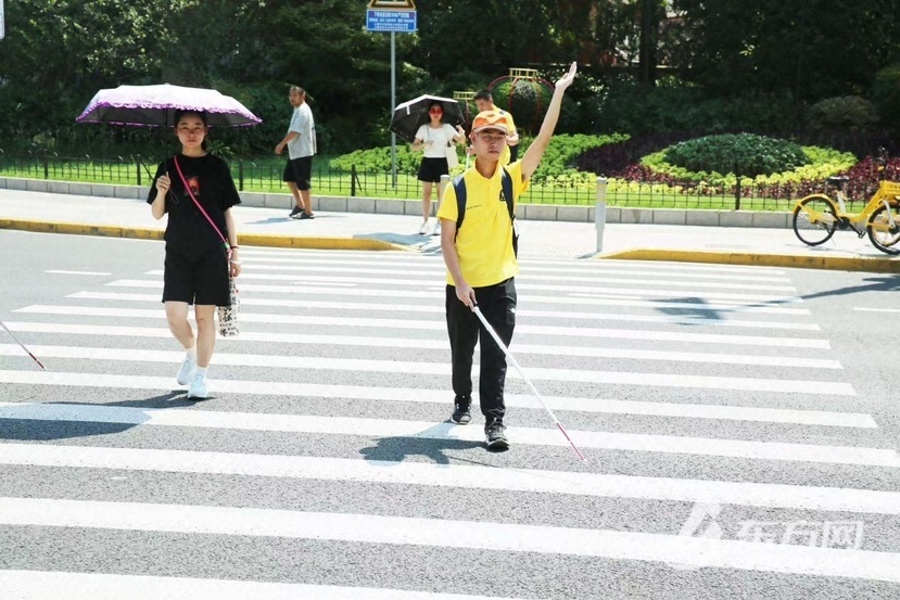 志愿者“陪伴”視障大學生過馬路、探索學校周邊交通路線