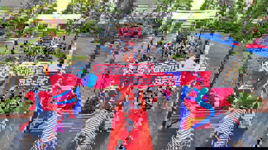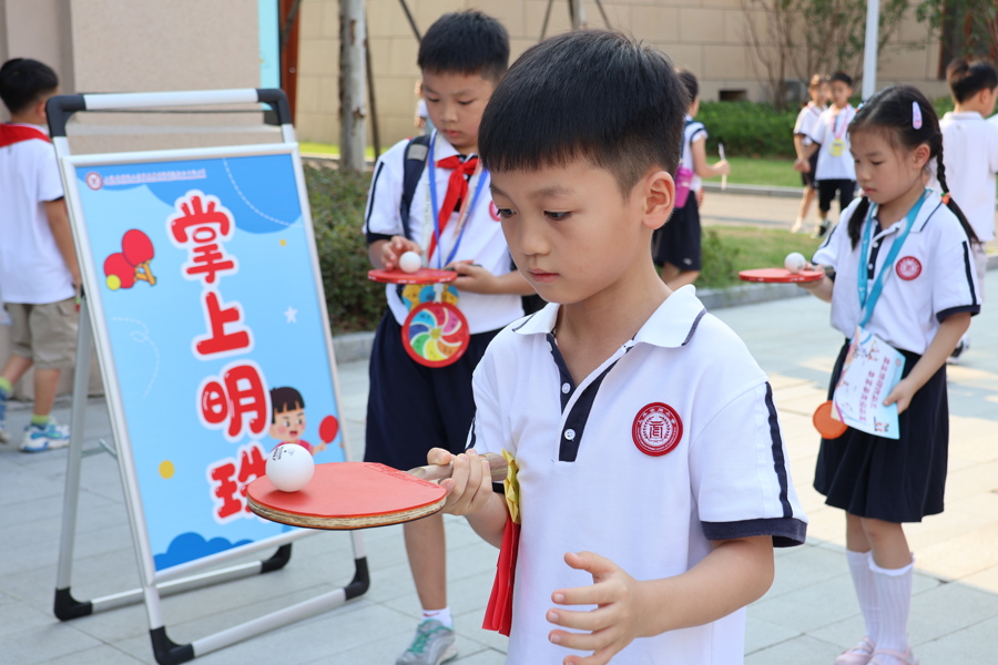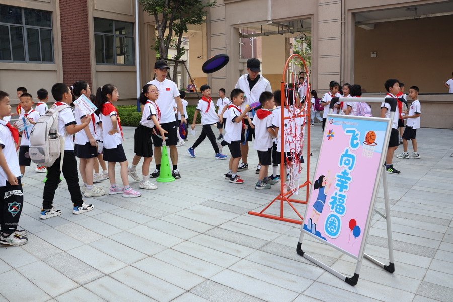 開學首日,上海工程技術大學附屬松江泗涇實驗學校校園“微奧運”現場。