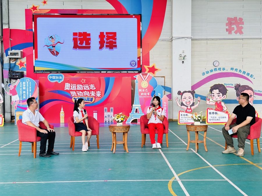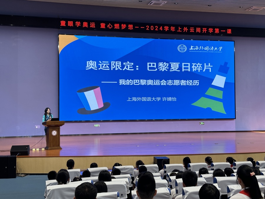 學校開學第一課還請來巴黎奧運會志愿者——上海外國語大學2021級法語系本科生許婧怡。她經過層層選拔,入選巴黎奧運會志愿者,用志愿服務詮釋責任與奉獻,激勵著每一位學弟學妹:只要有夢想、有目標,就應全力以赴,用實際行動追逐夢想,成就非凡,做自己的冠軍。
