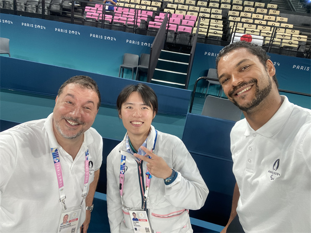 留著干練短發的梁艷小時候就是打籃球出身,后來考入南京師范大學籃球專項,之后又在華東師大讀碩博。原本的巴黎奧運會,梁艷就拿到了志愿者Offer,但因與學業有一定沖突,她只能割愛。幸運的是,她繼續拿到了殘奧會志愿者的入場券。從比賽正式開幕日前兩天參與場地測試到9月7日該項目落幕,作為一名體育研究專業的博士生的她挑起了專業活兒。