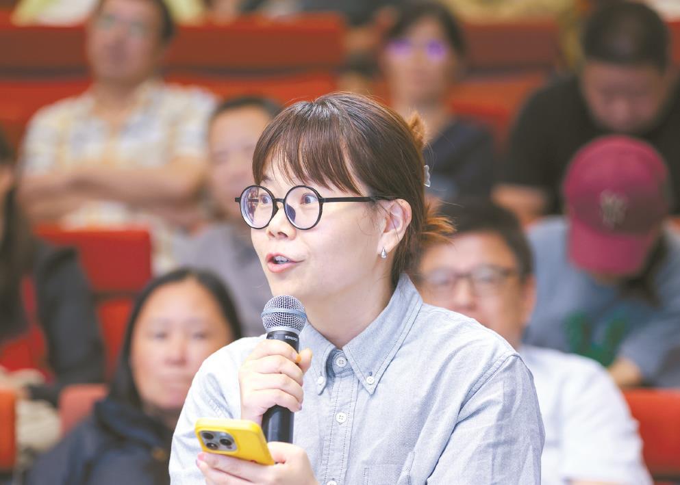②第一位報(bào)名的聽(tīng)眾、教師李曉蕓現(xiàn)場(chǎng)第一個(gè)提問(wèn),有備而來(lái)。攝影 周文強(qiáng)