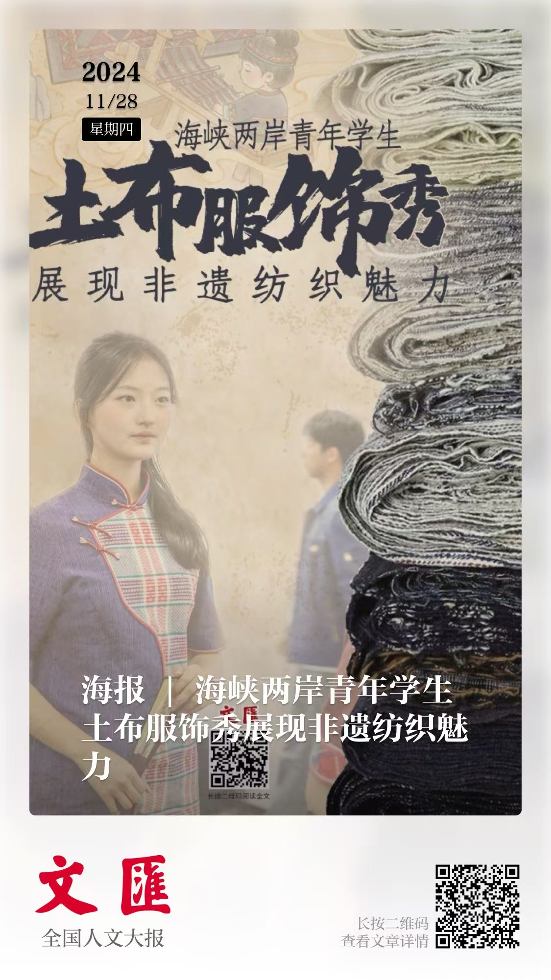 通過圖文實物、傳承人演示、觀眾體驗、數(shù)字云端展演等形式,本次展覽多元化展示了黃道婆創(chuàng)新精神與棉紡織文化魅力,深入挖掘黃道婆創(chuàng)新精神和科學精神的時代內(nèi)涵,助推兩岸青年在新時代傳承中華優(yōu)秀傳統(tǒng)文化,發(fā)揚黃道婆的創(chuàng)新精神,攜手共進,為以中國式現(xiàn)代化全面推進強國建設、民族復興偉業(yè)作出積極貢獻。