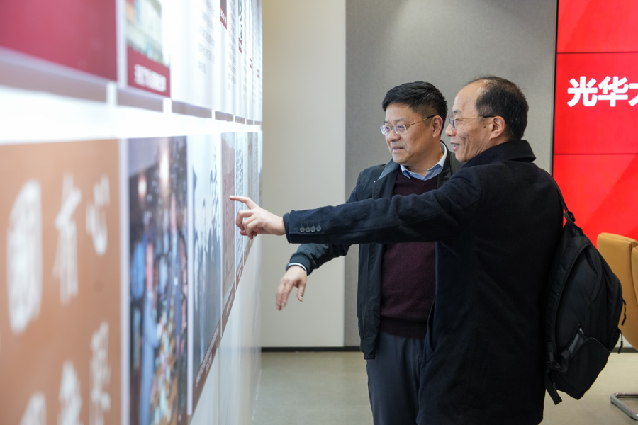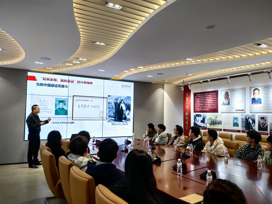 開展當天,展覽資料整理人、東華大學馬克思主義學院青年教師李天星在現場為觀展師生帶來了“行走的思政課”:東華“對話”光華,知史才能明道,正如光華校歌所唱的“觀國之光遠有耀,重任在吾躬”,弦歌不輟、芳華待灼……