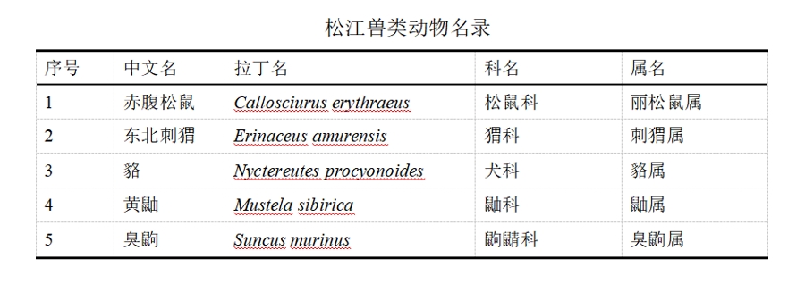 截至目前,松江區(qū)記錄到五種獸類。