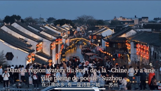 “J'espère que plus d'amis étrangers viendront à Suzhou pour découvrir sa culture profonde et son développement extraordinaire ! ”(希望有更多的外國友人來到蘇州,了解蘇州的深厚文化底蘊和偉大發(fā)展成就。)這是上海對外經(jīng)貿(mào)大學國際組織學院(貿(mào)易談判學院)徐姝怡同學以“蘇州——江南水鄉(xiāng)的現(xiàn)代魅力”為主題,采用法語和漢語雙語介紹家鄉(xiāng)蘇州的獨特風貌時拍攝的一段小視頻。