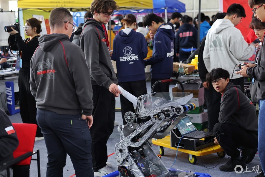 “我們跨越12個時區(qū)來到上海,就是為了跳出加州比賽的舒適圈,體驗國際機(jī)器人賽事的多元生態(tài)。”來自美國加利福尼亞的Marina 7413戰(zhàn)隊成員伊莎妮(Ishani)分享道。這支參賽隊特別感謝來自中國山西太原的7002號戰(zhàn)隊,“7002戰(zhàn)隊幫我們準(zhǔn)備了無法飛行攜帶的電池等設(shè)備,而且他們帶我們快速熟悉了上海這座美麗的城市,炸豬排和煎豆腐實在是非常美味。”