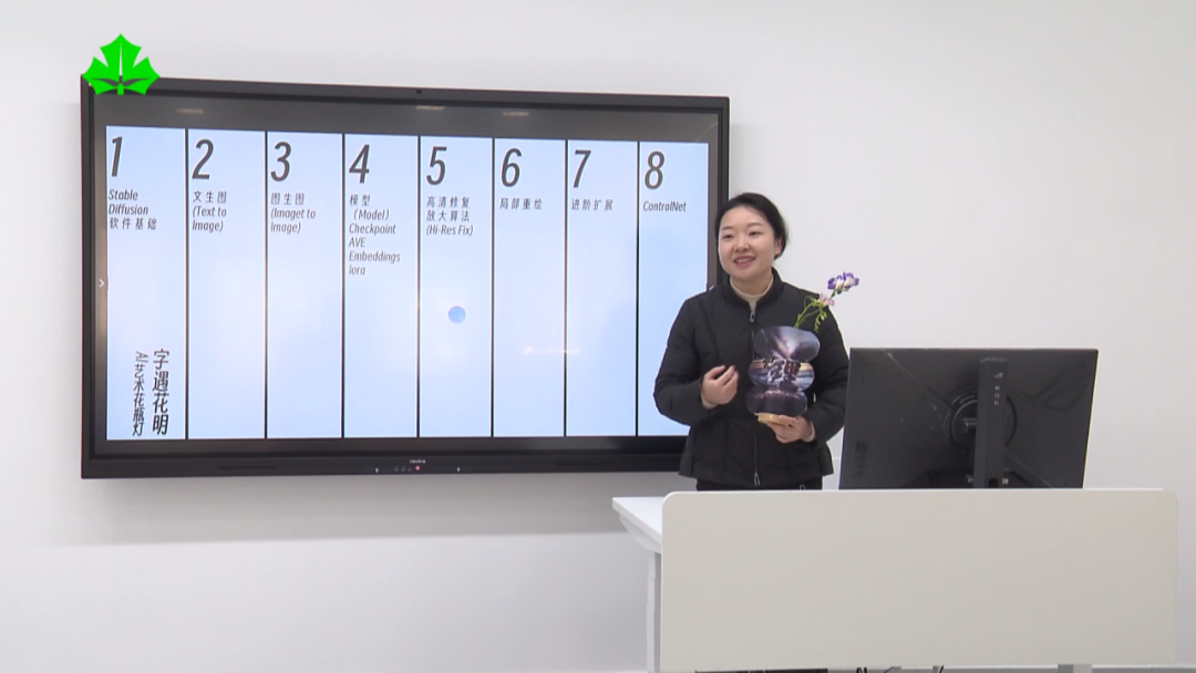 為了讓藝術“零”基礎、AI水平不同的同學們同上一堂藝術課,授課教師章文需要花更多的時間、精力去學習、備課。在課前,她會調試大量代碼,或者嘗試不同模型的組合,以便上課時把“最佳方案”交到學生手中。