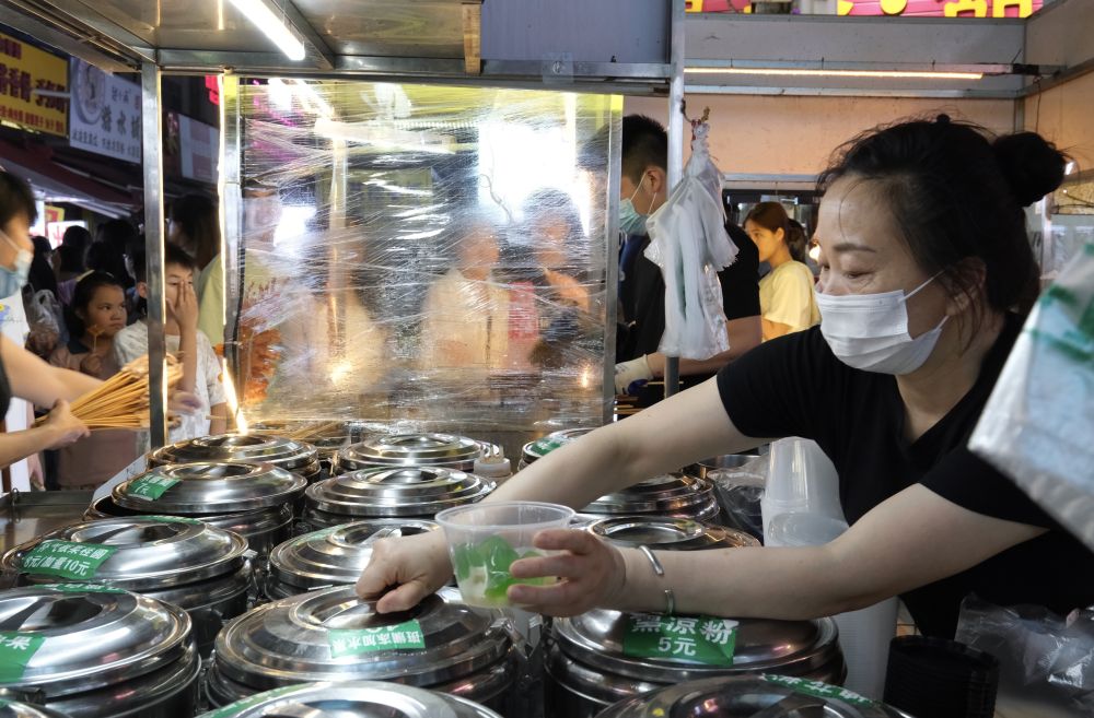 圖為廣西南寧埌西夜市攤主正在銷售糖水。新華社記者 鄒雨沁 攝