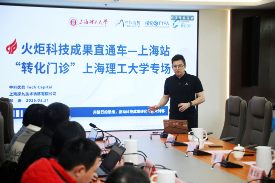專業(yè)技術(shù)轉(zhuǎn)移機(jī)構(gòu)負(fù)責(zé)人在上理工轉(zhuǎn)化門診上作宣講。