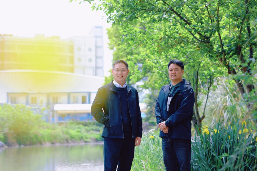 華東師范大學河口海岸全國重點實驗室2021級海洋生物學專業博士生張家偉(右)為論文唯一第一作者,指導教師董宏坡研究員(左)為論文第一通訊作者。