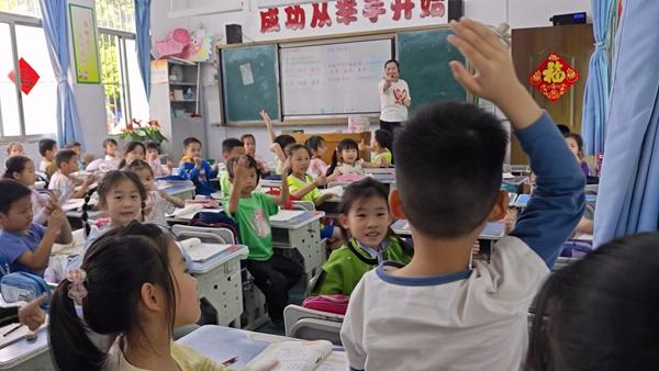 4月10日,廣西南寧民族大道東段小學,融合教育課堂內,學生踴躍舉手。江暢/攝