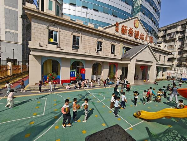 4月8日,春暖新希望幼兒園,孩子們在操場上活動。受訪單位供圖
