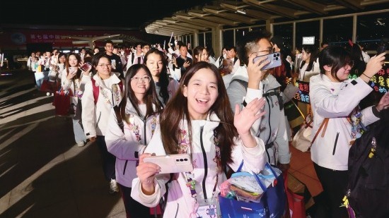 一聲聲再見,一句句真摯祝福。昨晚6時(shí)許,“再見”進(jìn)博志愿者離園儀式在國(guó)家會(huì)展中心(上海)東登錄廳舉行。歌聲悠揚(yáng),人潮涌動(dòng),“小葉子”們不斷揮手,向并肩奮戰(zhàn)數(shù)日的伙伴們致意,向辛勤的工作人員表達(dá)感激,更向身后的國(guó)家會(huì)展中心深深道別?!霸僖姟边M(jìn)博志愿者離園儀式送別“小葉子”。 本版攝影 青年報(bào)記者 吳愷 施培琦 《年輕的力量》《夜空中最亮的星》《紅日》《再見》……樂(lè)隊(duì)現(xiàn)場(chǎng)演奏起“小葉子”們心愛的旋...