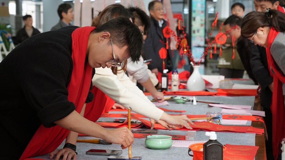 新春臨近,華東師范大學(xué)閔行校區(qū)圖書館里,一副副大紅色的春聯(lián)高掛,洋溢著新春的期盼和祝福,一年一度的傳統(tǒng)文化活動“人人寫春聯(lián)”拉開序幕。1月8日的活動現(xiàn)場。 華東師大已連續(xù)十年舉辦春聯(lián)書寫活動,今年以“冬至陽生春又來”為主題,將楹聯(lián)與書法這兩個非遺項目結(jié)合起來,并開展原創(chuàng)楹聯(lián)的征集活動。1月8日的活動現(xiàn)場。 華東師范大學(xué)美術(shù)學(xué)院教授、教育部中華優(yōu)秀文化篆刻文化傳承基地負(fù)責(zé)人張索,已連續(xù)多年參...