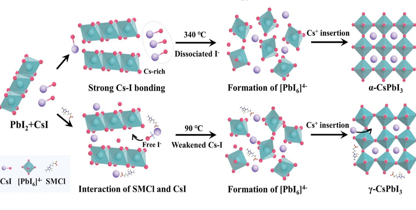 鈣鈦礦電池成本低,效率高,是當(dāng)前最具應(yīng)用潛力的新型光伏技術(shù)。而全無(wú)機(jī)鈣鈦礦(CsPbI3)憑借其固有的穩(wěn)定性?xún)?yōu)勢(shì),具有巨大的應(yīng)用價(jià)值。然而,其高溫結(jié)晶過(guò)程嚴(yán)重制約了其在柔性器件中的應(yīng)用。近日,華東師范大學(xué)物理與電子科學(xué)學(xué)院方俊鋒、李曉冬團(tuán)隊(duì)聚集反向鈣鈦礦電池,在前期表界面能帶調(diào)控的基礎(chǔ)上(Adv. Mater. 2024, 2410273;Adv. Mater. 2024, 2311025),針對(duì)CsPbI3結(jié)晶溫度高的問(wèn)題,提出Cs—I鍵弱化策略,有效...