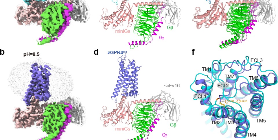 G蛋白偶聯(lián)受體(GPCR)是一類具有典型七次跨膜螺旋結構的膜蛋白,構成了真核生物中規(guī)模最大、功能最為多樣的膜蛋白家族,在人類基因組中擁有超過800個成員。其中GPR4、GPR65和GPR68組成了酸受體亞家族,能夠感應細胞外微環(huán)境中pH的變化,誘發(fā)細胞應答。局部酸性環(huán)境是許多病理過程(如炎癥和腫瘤)的顯著特征,特別是在腫瘤組織及其微環(huán)境中,由于代謝活性增強,pH通常比正常組織低0.5至1個單位,從而導致相關酸受體的過度...