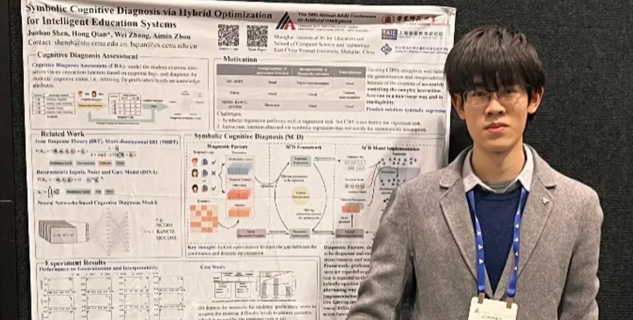 以第一作者身份在CCF-A類國際會議發表論文2篇;榮獲神經信息處理系統大會(NeurIPS)2023因果結構學習挑戰賽國際冠軍;獲中國計算機學會大學生學術秀本科組冠軍;商湯獎學金提名獎、華鑫獎學金、優秀學生特等獎學金獲得者......他是計算機科學與技術學院2021級本科生沈君豪,一起來看看這位本科生是如何玩轉“人工智能+教育”。計算機科學與技術學院2021級本科生沈君豪|在不同學科背景的碰撞中成長 沈君豪的科研契機源...