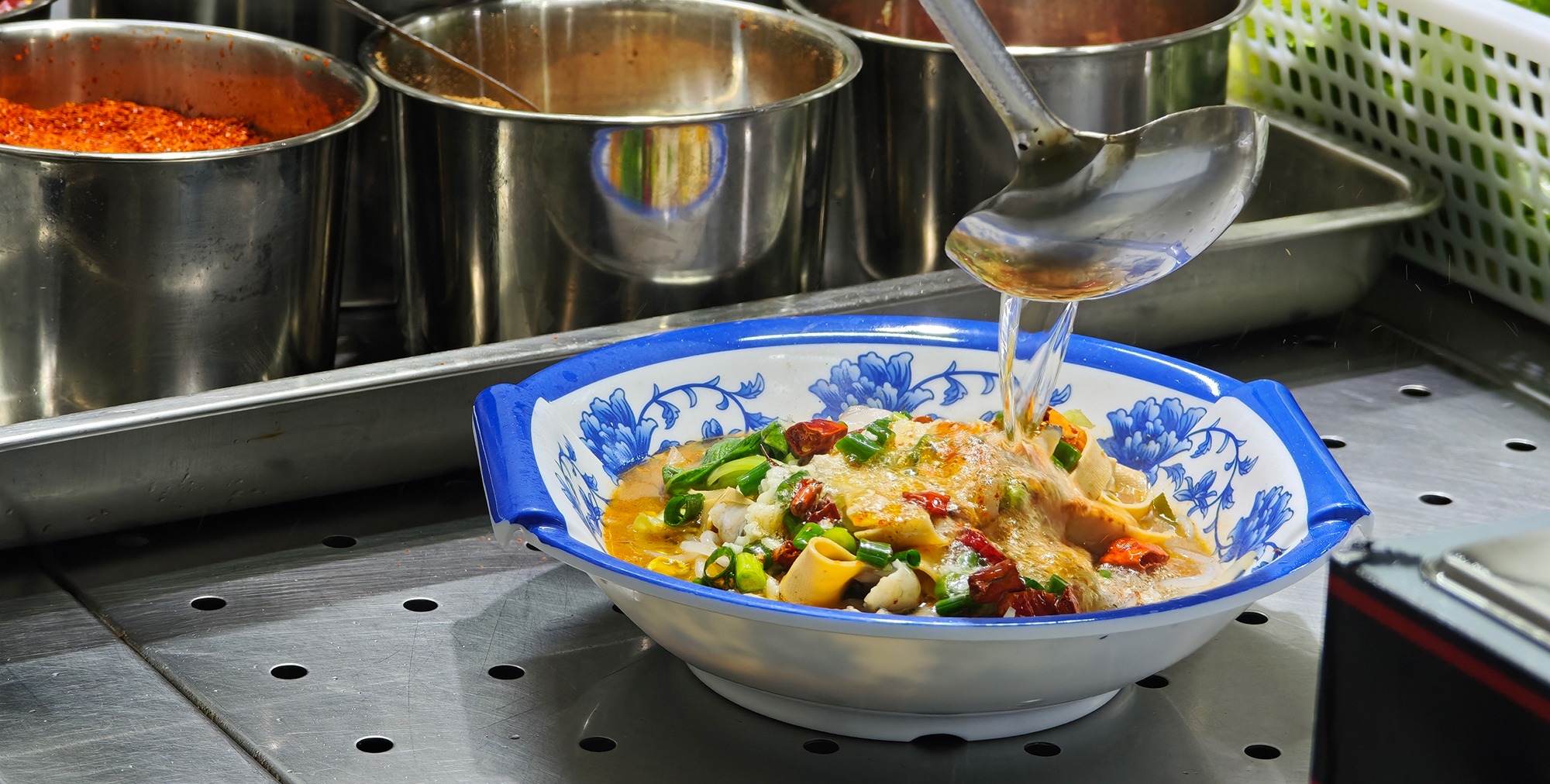 本周4月16-18日,華東師大和同濟(jì)大學(xué)互派技藝精湛的大廚小分隊(duì),為兩校師生帶來(lái)跨校美食體驗(yàn)。 校味互鑒,舌尖“聯(lián)萌”,本次交流活動(dòng)為期3天,同濟(jì)大學(xué)的大廚們共帶來(lái)14道本幫菜肴、6道油潑水煮美食。 為了就地體驗(yàn)“吃在同濟(jì)”的實(shí)力,午餐時(shí)間普陀校區(qū)河?xùn)|食堂一樓專窗,同學(xué)們排起了長(zhǎng)龍。 咸蛋黃中翅、糖醋小排、粉蒸肉、杭椒牛柳、雙椒辣子雞、油爆蝦......可謂菜式豐富、口味多樣。 各式各樣川味的水煮...