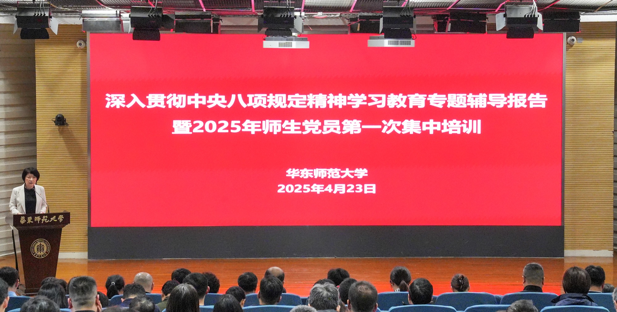 4月23日下午,華東師范大學舉行深入貫徹中央八項規(guī)定精神學習教育專題輔導報告暨2025年師生黨員第一次集中培訓,集中觀看中央黨校(國家行政學院)教育長張忠軍教授“深入學習貫徹習近平總書記關(guān)于黨性的重要論述,加強黨性修養(yǎng)”課程。報告會由校黨委書記梅兵主持。華東師大舉行深入貫徹中央八項規(guī)定精神學習教育專題輔導報告暨2025年師生黨員第一次集中培訓 學校在閔行校區(qū)大學生活動中心C區(qū)報告廳設(shè)主會場,普陀校區(qū)...